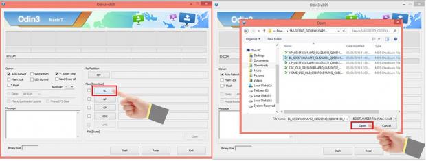 - BL Chọn file BL_G935FXXU1APF2_CL8252943_QB9814184_REV00_user_low_ship.tar Open.