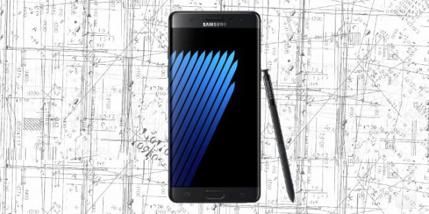 Khi đặt cạnh 3 smartphone cao cấp trước đó là Samsung Galaxy Note5, Samsung Galaxy S7 Edge và Galaxy S7, Note7 tỏ ra nam tính hơn bộ đôi S7 nhờ kiểu dáng vuông vắn. Trong khi đó, máy nhẹ hơn và hẹp hơn so với người tiền nhiệm Note 5.