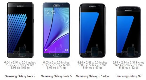 Để cạnh bên iPhone 6s Plus, Galaxy Note 7 đã tỏ rõ sự nhỏ gọn của mình khi kích thước gọn hơn hẳn sản phẩm của Apple, trong khi đừng quên là Note7 có màn hình lớn đến 5,7 inch, lớn hơn con số 5,5 inch của iPhone 6s Plus. Đồng thời Note7 (169 gram) cũng nhẹ hơn iPhone 6s Plus (192gram một cách đáng kể). Rõ ràng Apple cần phải thu hẹp thêm phần viền màn hình trên iPhone 7 nếu như họ muốn cạnh tranh với Samsung.