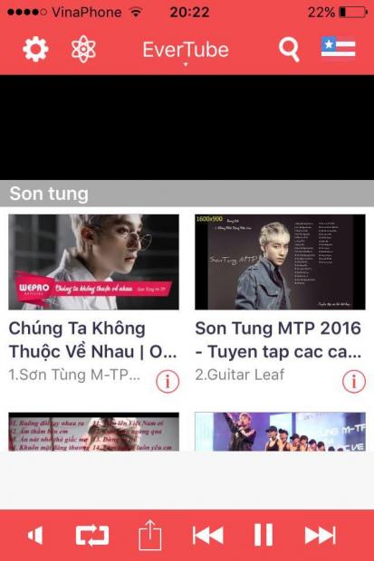 Đầu tiên mình sẽ nói về tính năng hữu ích nhất của phần mềm này chính là nghe nhạc từ video trên YouTube ngay cả khi màn hình tắt rất dễ dàng. Như các bạn thấy hình dưới chính là giao diện của Evertube, nó gần giống YouTube, các bạn chỉ cần gõ vào ô tìm kiếm video mình yêu thích.