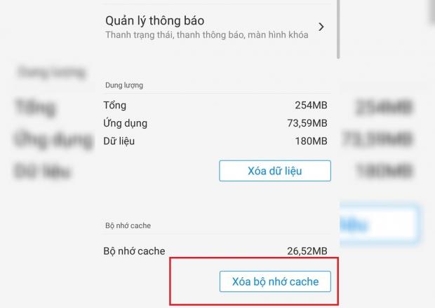 Bộ nhớ cache là bộ nhớ đệm phát sinh trong quá trình sử dụng một ứng dụng nào đó. Việc xóa bộ nhớ này sẽ giúp giải phóng dung lượng của thiết bị và khắc phục được phần nào tình trạng nói trên. Để thực hiện, bạn truy cập vào Cài đặt > Quản lý ứng dụng. Sau đó chọn ứng dụng để xóa cache.