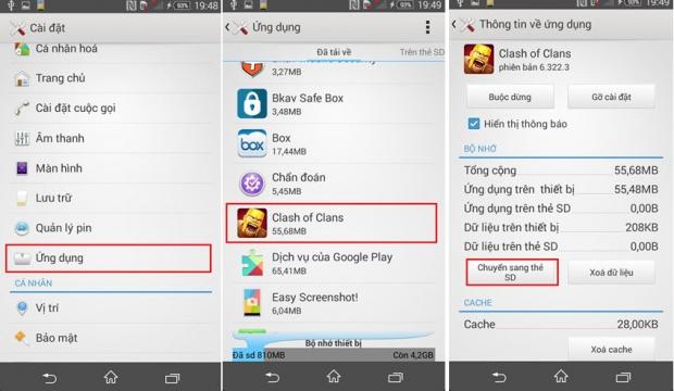 2. Di chuyển ứng dụng sang thẻ nhớ
