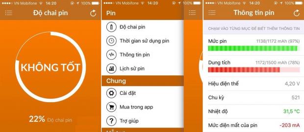 Dựa vào đây các bạn có thể biết được pin của mình có bị chai hay không?2. Sử dụng Battery Life (trực tiếp trên iPhone không Jailbrek)