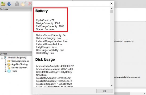 - Tải iBackupBot ~ 5 MB (dùng để kiểm tra pin).