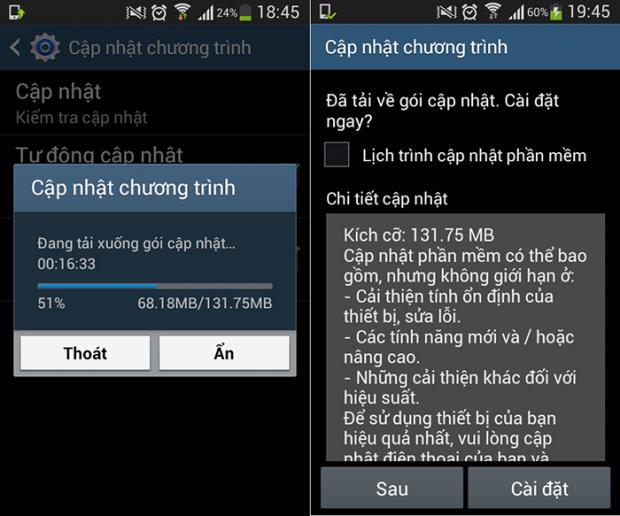 - Máy đã root: Hủy root như hướng dẫn phần 5 và thử update lại.