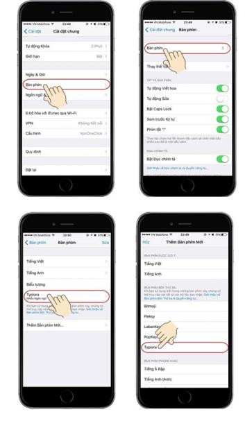 Nếu muốn nhập được Tiếng Việt, bạn tiếp tục vào ứng dụng Typiora sau đó chọn Bàn Phím, nhấp vào Thêm Bàn Phím Mới, tại đây, tải về ngôn ngữ Tiếng Việt. Kết thúc quá trình thay đổi bàn phím, hãy vào phần Nhắn tin rồi nhấn giữ biểu tượng quả cầu và chọn Typiora để kích hoạt.