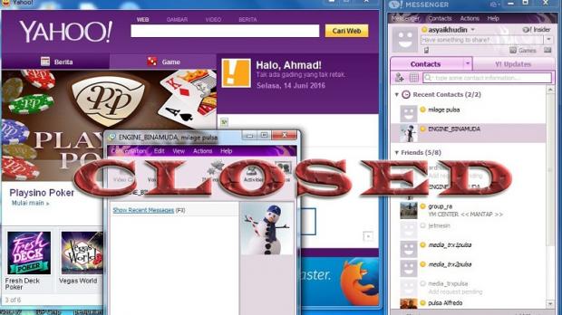 Giao diện Yahoo Messenger mớiTrên trang web của Yahoo, thông điệp về Messenger có nội dung như sau: 'Vào ngày 5 tháng 8 năm 2016, phiên bản Yahoo Messenger kế thừa sẽ bị dừng cung cấp. Nếu gần đây bạn chưa nâng cấp Yahoo Messenger, có thể bạn đang sử dụng phiên bản kế thừa. Để tiếp tục sử dụng Yahoo Messenger, vui lòng nâng cấp lên phiên bản mới nhất'.