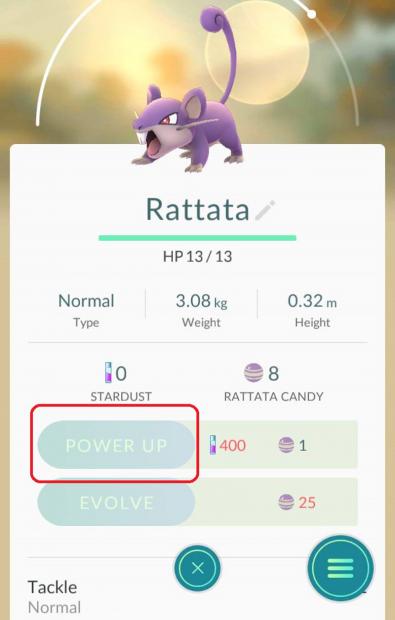 Lưu ý: bạn sẽ không thể nâng cấp Pokémon của bạn cho đến khi bạn có đủ Candy và Stardust yêu cầu. Số lượng Candy và Stardust cần thiết sẽ hiển thị trong bảng thông tin về Pokémon ngay khi bạn lựa chọn Pokémon đó.