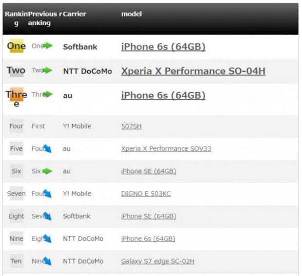 Top 10 điện thoại được bán chạy nhất tại Nhật Bản đã có một sự kiện ấn tượng với việc một chiếc điện thoại Android One mang tên Sharp Aquos 507SH dành được bị trí thứ 4 chỉ sau iPhone 6s của Apple.