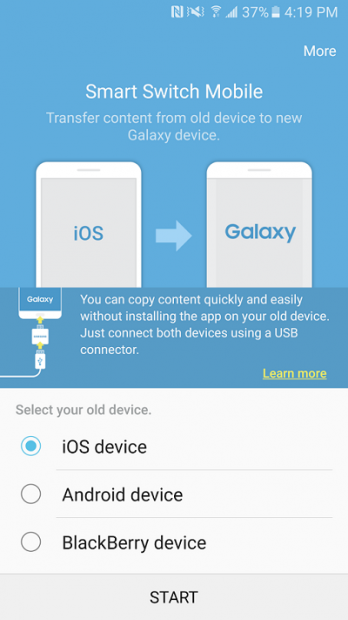 Thao tác này cũng được thực hiện khá đơn giản, bạn chỉ cần cài đặt và mở ứng dụng Smart Switch trên Galaxy Tab A6 10.1″, lựa chọn kết nối với thiết bị tương ứng (từ iOS hoặc Android). Sau đó dữ liệu sẽ tự động chuyển hóa một cách cực kỳ nhanh chóng.