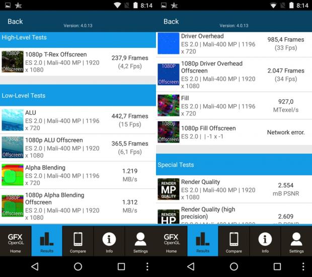 Trong phép thử Antutu Benchmark, Mobiistar LAI Zumbo J đạt được tổng điểm là 22763. Tương tự, trong phép thử GFX OpenGL, ở bài High-Level Test, Mobiistar LAI Zumbo J chỉ đạt được 4,2 Fps, còn với Low-Level Test, con số cao nhất là thiết bị đạt được vẫn chỉ ở mức 34 Fps, với GPU Mali-400MP thì điểm số này hoàn toàn dễ hiểu, vì căn bản đây là một trong những GPU yếu, không phù hợp để chơi game và chạy các ứng dụng 3D.