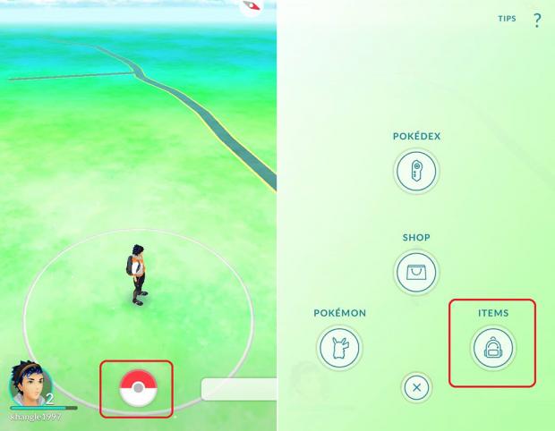 Đầu tiên, từ giao diện chính của game các bạn chọn vào biểu tượng Pokeball/ items.