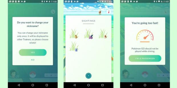 Cũng trong phiên bản này, người dùng sẽ được cảnh báo không nên chơi Pokemon Go khi đang lái xe và một khung thông báo sẽ hiện lên nếu bạn di chuyển vượt quá một tốc độ nhất định. Version 0.33.0 cũng đổi tên tính năng “Nearby” thành “Sightings” và hơi tiếc là tính năng theo dấu Pokemon vẫn chưa được mang trở lại game.