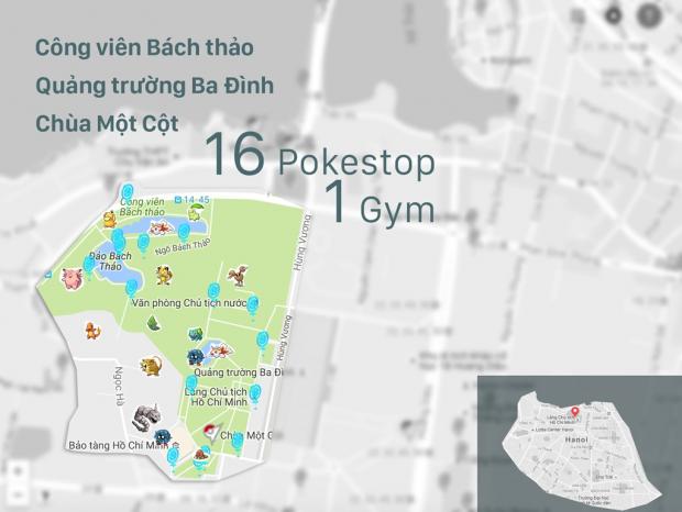 Khu vực quảng trường Ba Đình, công viên Bách Thảo và chùa Một Cột có rất nhiều Pokestop và các loại Pokemon phổ biến.