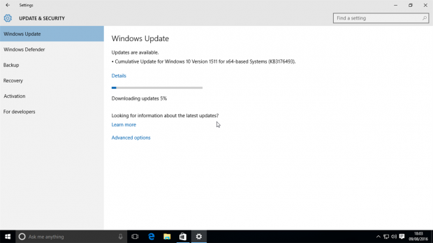 Bản thứ 2: Build 10.586.545 với KB3176493 cho máy tính vẫn còn đang chạy Windows 10 Build 1511.