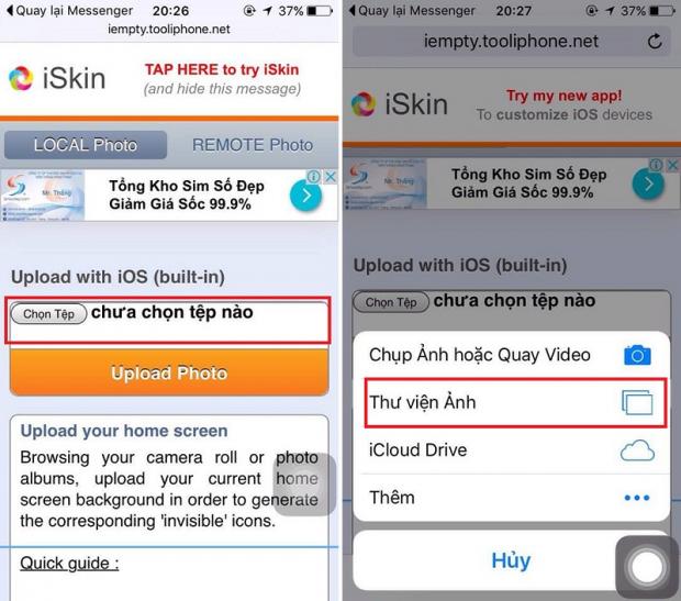 Bước 2: Các bạn mở Safari và truy cập vào link này. Bấm vào Chọn tệp, mở bức ảnh màn hình vừa chụp được và bấm vào Upload Photo.