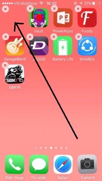 Để tạo một trang trống thì các bạn chọn một icon ở dưới thanh dock, các bạn nhấn giữ icon đó kéo sang bên phải cho tới khi xuất hiện một trang trống, sau đó các bạn đặt lại icon đó xuống lại thanh dock. Lưu ý là không bấm phím home vì nó ngay lập tức quay lại giao diện cũ.