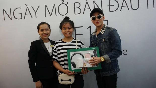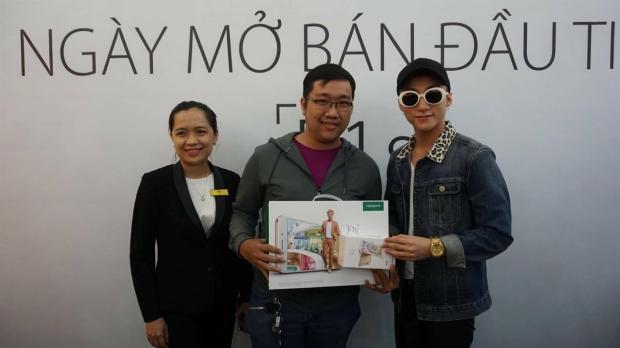 Dưới đây là những khách hàng đầu tiên nhận được OPPO F1s cùng bộ quà tặng hấp dẫn đi kèm và họ cũng được chụp ảnh cùng ca sĩ nổi tiếng Sơn Tùng MTP luôn nhé!
