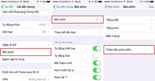 Các bạn vào Cài đặt > Cài đặt chung > Bàn phím > Thêm bàn phím mới.