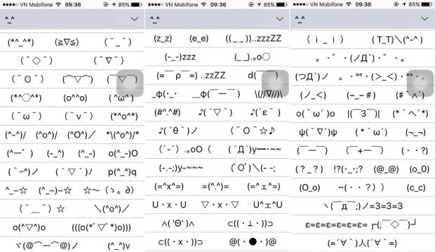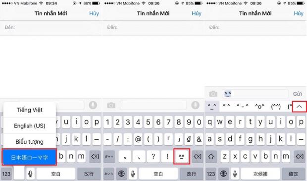 Bây giờ để sử dụng, các bạn chỉ cần bấm vào biểu tượng quả địa cầu > tiếng Nhật > bấm vào 123 để mở ra bảng ký tự. Tại đây, bạn sẽ thấy một biểu tương ^_^ bấm vào nó để mở danh sách các biểu tượng emotion, muốn sử dụng hình nào chỉ cần bấm chọn vào hình đó là được.