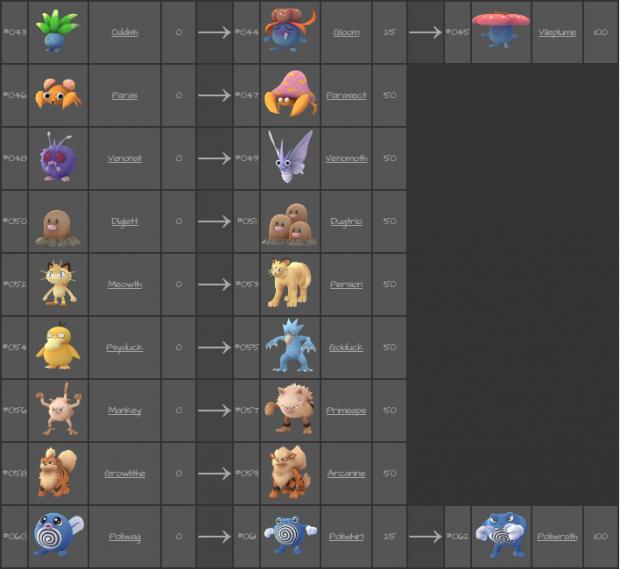 Dưới đây là sơ đồ tiến hóa của các loại Pokemon GO hiện có trong Pokemon Go cùng với số Candy bạn cần phải tiêu tốn trong quá trình tiến hóa: