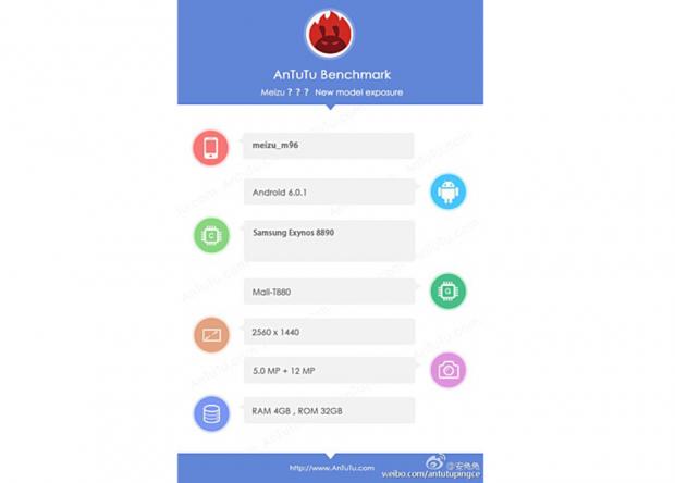 Thông số kỹ thuật khác của Meizu_m96 được tìm thấy trên AnTuTu bao gồm màn hình Quad HD, camera chính có độ phân giải 12MP và camera phía trước 5MP, 32GB bộ nhớ trong và Android 6.0.1 Marshmallow. Một số nguồn đáng tin cậy cũng cho biết rằng điện thoại này sẽ đến với tên gọi Meizu Pro 7 hoặc một biến thể của Meizu Pro 6.