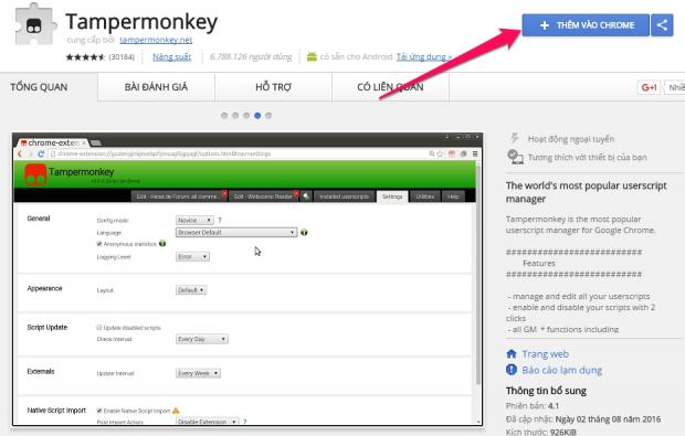 Trước tiên, các bạn cài đặt tiện ích mở rộng Tamperscript cho Chrome hoặc Greasemonkey cho Firefox.