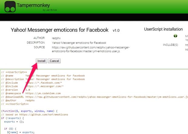 Sau khi cài đặt xong các bạn cần tải về script tại đây để biến các biểu tượng của Facebook thành biểu tượng của Yahoo.