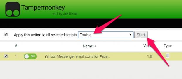 Một trang mới hiện ra, các bạn tích chọn vào Yahoo Messenger Emoticon... sau đó chọn Enable và bấm vào nút Start để kích hoạt.