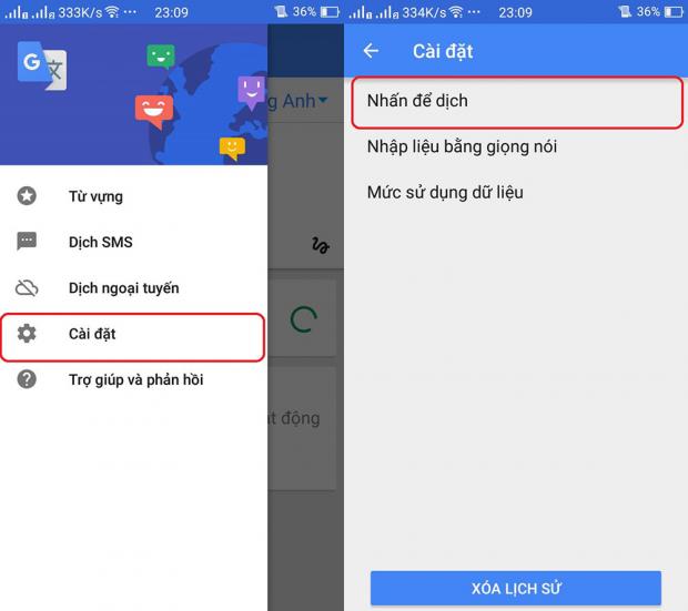 Bước 2: Sau đó, bạn chọn mục Nhấn để dịch. Tại đây bạn tích vào Bật Nhấn để dịch mà Hiển thị thông báo.