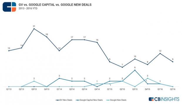 Sau đây là biểu đồ thống kê số các thương vụ mới được thực hiện tại GV, GC và team M&A của Google/Alphabet.
