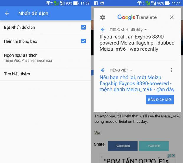 Bước 2: Sau đó, bạn chọn mục Nhấn để dịch. Tại đây bạn tích vào Bật Nhấn để dịch và Hiển thị thông báo.
