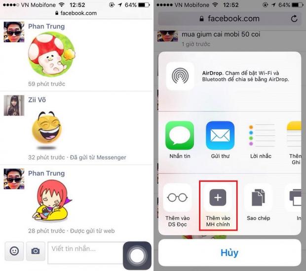 Facebook bắt buộc người dùng phải cài Messenger để trò chuyện với bạn bè. Nhưng chúng ta có thể sử dụng trình duyệt safari để chat với bạn bè hay bạn có thể ghim ra màn hình chính để truy cập nhanh hơn.