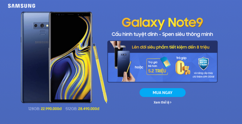 Quay lại vấn đề chính, mình không sẵn sàng bỏ tiền ra mua bản 256GB hay 512GB (mới vừa được bổ sung cho thế hệ iPhone mới nhất). Nhưng lại cần dung lượng cao như vậy thì thẻ nhớ là giải pháp phù hợp nhất nhưng Apple vẫn chưa cho phép chúng ta tiết kiệm tiền, họ còn vô hình ép người dùng mua bản 256GB, đưa ra bản 64Gb / 256GB / 512GB thì không phải ép là gì? Bản 128GB đâu? Đây, bản 128GB đây, Galaxy Note 9 có bản thấp nhất là 128GB vừa đẹp, hỗ trợ thẻ microSD lên tới 512GB nhưng mình không cần thẻ đến mức đó, 64GB hoặc 128GB là quá ổn rồi.Ap