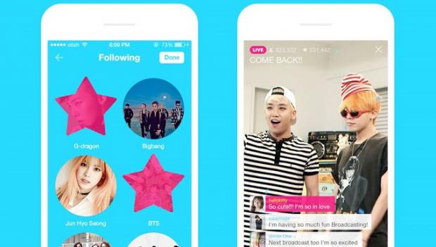 V Live là ứng dụng chạy trên điện thoại dùng hệ điều hành iOS và Android, cho phép người dùng tương tác với các ngôi sao nổi tiếng qua video truyền hình trực tiếp (live streaming). Sử dụng V Live, người dùng có thể xem và giao tiếp bằng cách gửi tin nhắn với người nổi tiếng qua video được quay trong thời gian thực.
