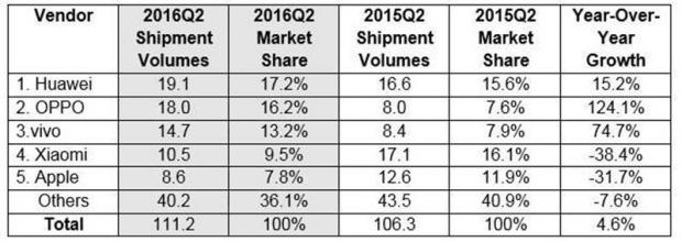 Nhưng ngay cả Huawei cũng nên lo lắng vì OPPO và Vivo với chiến lược marketing hiệu quả đã lần lượt bán được 18 và 14.7 triệu chiếc. Qua đó có khả năng soán ngôi vị dẫn đầu của Huawei ngay trong quý III năm nay.
