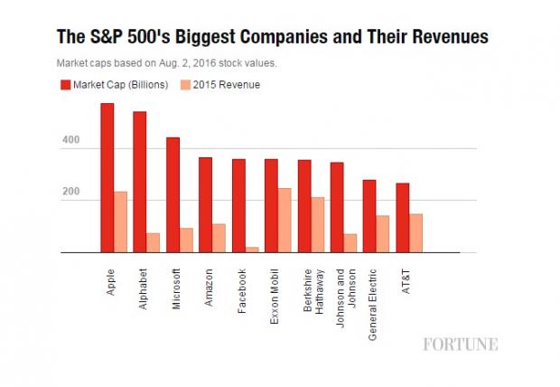 Điều đó cho thấy rằng các nhà đầu tư hoàn toàn có thể đưa ra dự đoán rằng Amazon và Facebook có giá trị hơn Exxon và Berkshire khi mà hai công ty công nghệ này đang qua mặt hai Gã khổng lồ trong lĩnh vực dầu mỏ và bảo hiểm, ít nhất là khi nói đến doanh thu.
