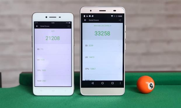 Với vi xử lý MediaTek MT6735, RAM 3GB, Mobiistar tỏ ra nổi trội hơn hẳn đối thủ đến từ Trung Quốc với con chip Qualcomm Snapdragon 410, RAM 2GB. Chấm điểm bằng phần mềm AnTuTu cho thấy hai model này có điểm số rất chệnh lệch, trong khi Mobiistar Lai Zumbo S khiến người dùng ấn tượng với con số 33258 thì A37 lại thụt lùi ở phía sau với số điểm chỉ 21208. So sánh chi tiết hơn về điểm số 3D, sản phẩm thương hiệu Việt đạt 3259 điểm trong khi đối thủ đến từ Trung Quốc chỉ dừng lại ở mức 772 điểm.