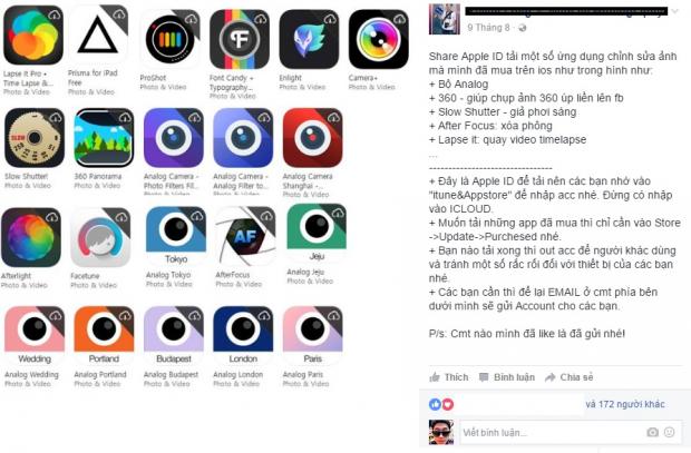 Ngoài ra, các bạn có thể mượn những tài khoản Apple ID của người thân, bạn bè đã từng mua ứng dụng đó để tải về. Hoặc các bạn có thể tham gia các hội nhóm về iPhone và iOS trên Facebook, ở đó các thành viên có thể sẽ giúp đỡ bạn tải 'chùa' những game, ứng dụng tính phí.