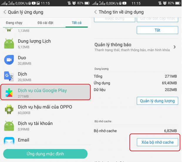 3. Xóa bộ nhớ cache của dịch vụ Google Play: