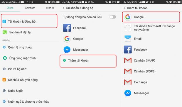 Nếu vấn đề vẫn còn tiếp tục xảy ra thì bạn nên Xoá tài khoản Google trên máy và đăng nhập lại. Bạn vào Cài đặt > Tài khoản > Thêm tài khoản > Google.