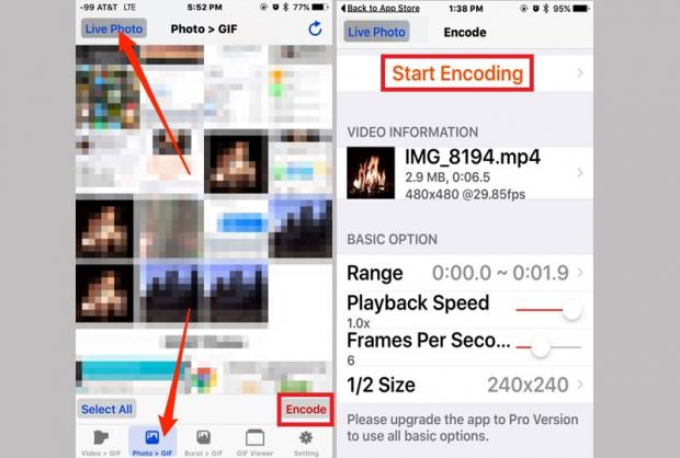- Tiếp theo, bạn chọn Live Photo mà mình muốn và nhấn Encode.