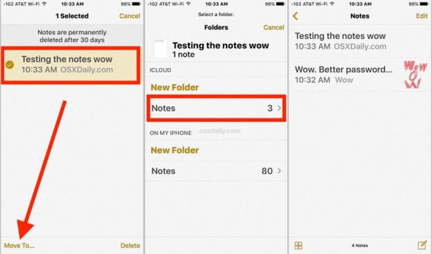 - Sau đó, bạn chọn các ghi chú và nhấn Move to để di chuyển đến thư mục mà bạn muốn, vậy là Ghi chú đã được khôi phục thành công.