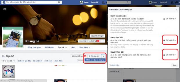 Đầu tiên, bạn vào trang cá nhân của mình và bấm vào mục 'Bạn bè' và chọn 'Chỉnh sửa quyền riêng tư'. Cuối cùng, bạn chọn 2 mục cuối cùng thành 'Chỉ mình tôi' là xong.