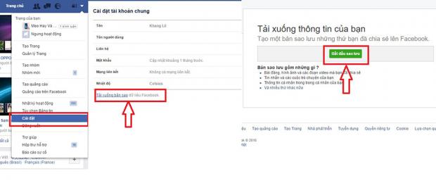 Đầu tiên, bạn mở Facebook là và vào phần Cài đặt. Tại đây, bạn chọn Tải xuống bản sao dữ liệu.