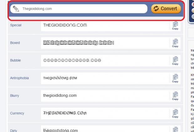 Đầu tiên, bạn truy cập vào trang web Stylish Fonts for Facebook và nhập nội dung bạn muốn và nhấn Convert.