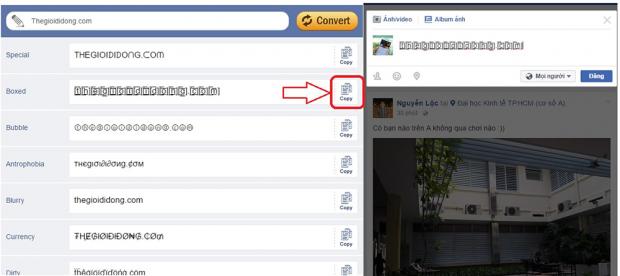 Sau đó bạn chọn những Font chữ mà bạn thích và nhấn vào copy. Cuối cùng, bạn có thể Dán vào Facebook và đăng lên để bạn bè chiêm ngưỡng.