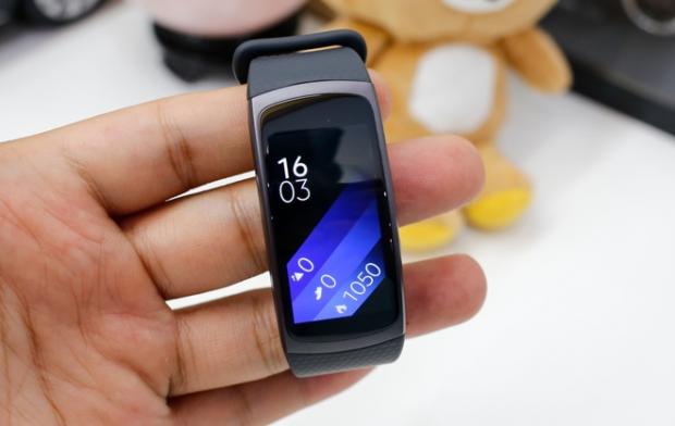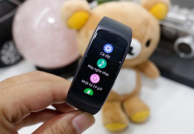 Gear Fit 2 tiếp tục sử dụng màn hình OLED cỡ 1,5 inch, thiết kế cong theo chiều cổ tay. có khả năng chống nước theo chuẩn IP68.' />