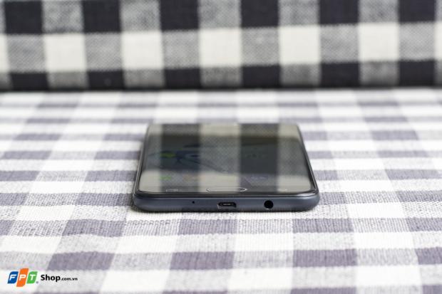 Ở cạnh dưới ta có cổng micro USB, cổng tai nghe 3,5 mm với micro đàm thoại. Cạnh trên hoàn toàn không có gì cả.