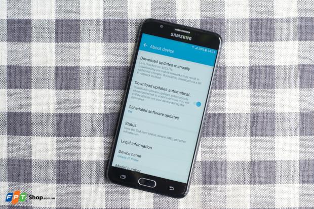 Về cấu hình, Samsung Galaxy J7 Prime được trang bị vi xử lý 8 nhân xung nhịp 1.6GHz với 3GB RAM và 32GB bộ nhớ trong. Thiết bị hoạt động trên nền hệ điều hành Android Marshmallow 6.0.1 với giao diện TouchWiz đặc trưng của Samsung, nhưng là giao diện cũ chứ chưa được nâng cấp lên giao diện mới như trên Galaxy Note 7. Ngoài ra, chiếc điện thoại Galaxy J7 Prime còn được hãng trang bị viên pin có dung lượng 3300mAh, sẽ tiến hành đánh giá và gửi đến các bạn bài đánh giá về thời lượng sử dụng pin của thiết bị trong thời gian tới.